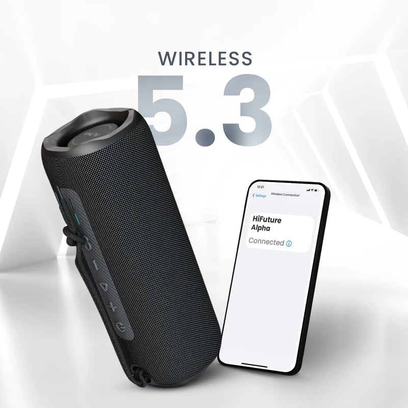 ลำโพงบลูทูธไร้สาย HiFuture Alpha Bluetooth Speaker เป็นลำโพงพกพาที่ผสมผสานดีไซน์กะทัดรัดเข้ากับพลังเสียงระดับ 20W พร้อมคุณสมบัติกันน้ำ IPX7 และการเชื่อมต่อ Bluetooth 5.3 รองรับการใช้งานต่อเนื่องยาวนานถึง 12 ชั่วโมง จึงเหมาะกับผู้ใช้งานที่ต้องการอุปกรณ์เสียงที่พกพาสะดวกและใช้งานได้ในหลายสถานการณ์